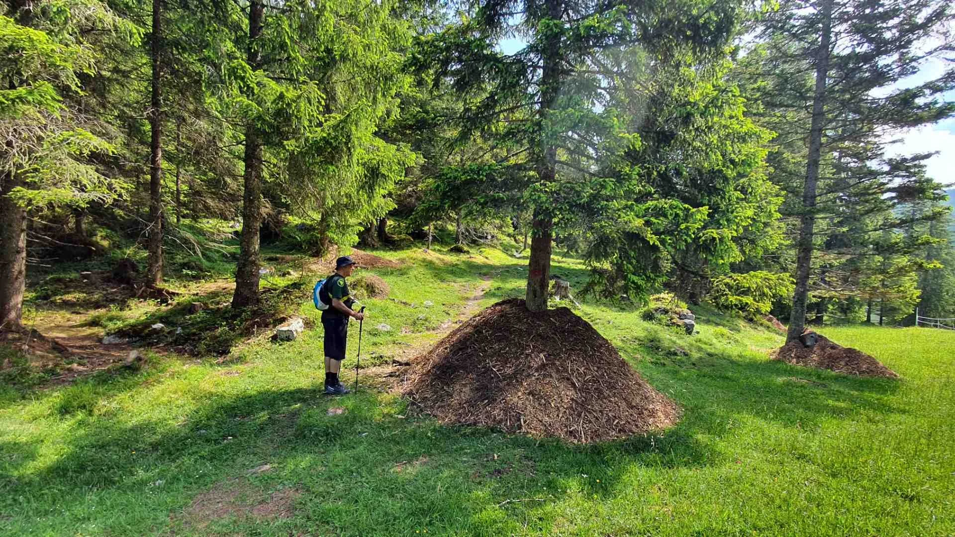 Der Trampelpfad verschwindet nach wenigen Metern im Wald, wo einem sofort klar wird, warum der Nachbarberg “Ameisberg” heißt. Ameisenhügel in teils beeindruckender Größe säumen den Weg.