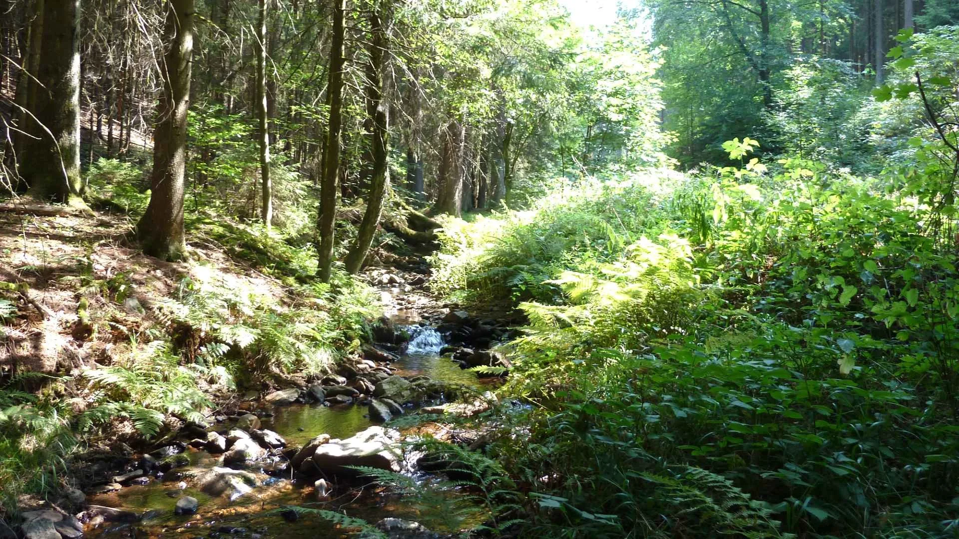 Die Tour startet an der Hölzleinsmühle am nördlichen Rand der Bayreuther Mainauen. Die ersten 7 Kilometer geht es auf Asphalt und Schotter über den den Golfplatz am Rodersberg (1), Höflas und Döhlau bis nach Untersteinach. In Untersteinach den Wegweisern des Mittelwegs („M“) folgen und am Ortsende die Landstraße nach Weidenberg überqueren. Weiter den Weg „M“ Richtung Ochsenkopf (2) nun auf Schotter am Krebsbächlein entlang bergauf fahren. Immer auf dem Hauptschotterweg bleiben (Abzweigung von “M” rechts bergauf und 800 Meter weiter von “W” nach links ignorieren). Auf den kommenden 15 Kilometern bis Goldkronach gibt es keinerlei Ortsberührung. Goldkronacher Forst pur.