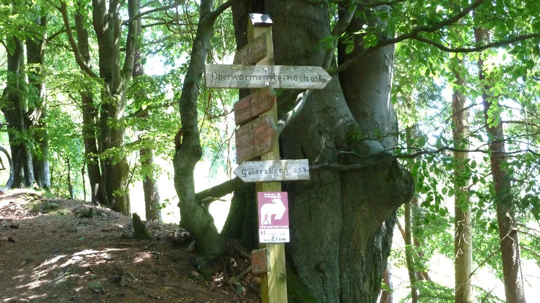 Das folgende Stück der Tour entlang des Mandleswiesenbachl ist ein recht knackiger Anstieg und erreicht in der Nähe der Wolfgangsquelle (5) am Dürrbergsteig den höchsten Punkt. Von hier aus geht es über das Wagenthal (6) 1,7 Kilometer bergab bis nach Oberwarmensteinach. An der Kirche (7) die Straße überqueren und gegenüber gleich rechts bergauf Richtung “Seminarzentrum”.