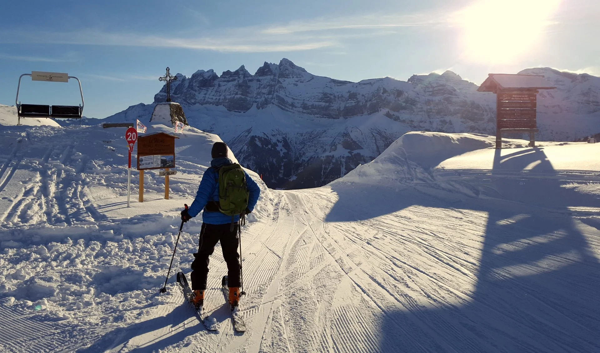 Unser Homebase ist Avoriaz. Wir hatten von dem Rando-Parc in Morgins gehört, fanden die Idee eines Parks eigens für Skitourengeher toll und wollten ihn unbedingt kennenlernen. Avoriaz liegt im Zentrum von Portes du Soleil, Morgins am Rand des Skigebiets. Um den Hin- und Rückweg über die Pisten und den Aufstieg bequem zu schaffen, sind wir mit den ersten Liften gegen 9 Uhr von Avoriaz aufgebrochen. Den Wegweisern Richtung Morgins folgend, haben wir mit mehreren Liften eineinhalb Stunden bis Morgins gebraucht. Für die Skitour selbst zwei Stunden und zwanzig Minuten und für den Rückweg nach Avoriaz mit fünf Liften nochmal zwei Stunden.